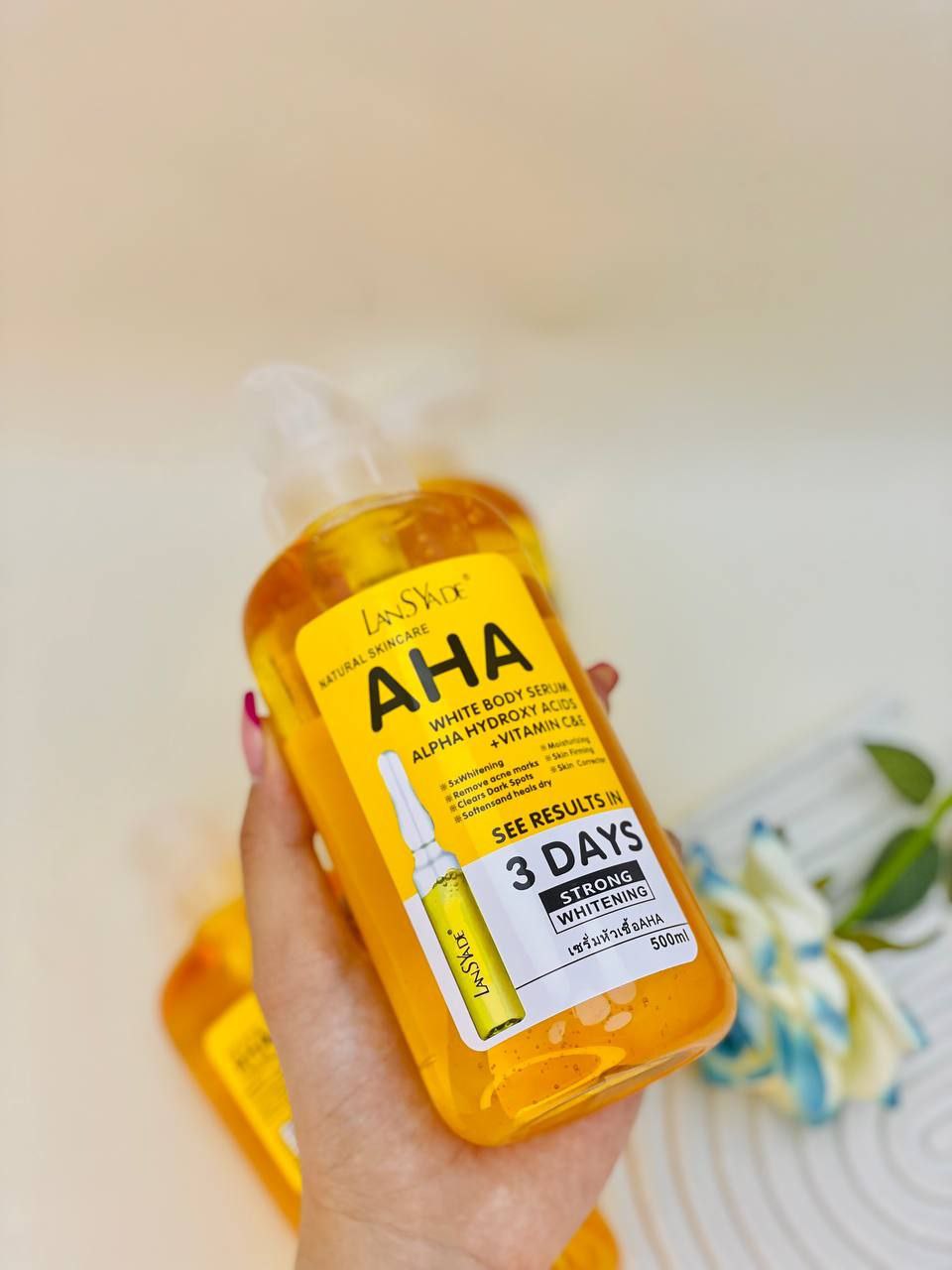 2-کاهش لک های پوستی : AHA موجود در سرم روشن کننده AHA لنسیاد، به کاهش لک های پوستی ناشی از آ،تاب ، بارداری و… کمک می کند .