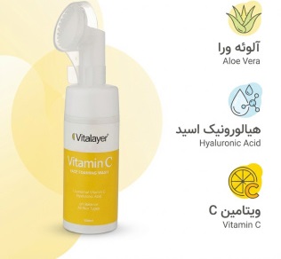 فوم شستشوی صورت حاوی ویتامین سی ویتالیر با دارا بودن ترکیبات موثر، موجب پاکسازی عمیق منافذ پوست و از بین رفتن آلودگیها و ناخالصیها میشود. این محصول حاوی ویتامین C و هیالورونیک اسید است، در آبرسانی و حفظ رطوبت پوست موثر است. فوم شستشو ویتامین سی ویتالیر ضدحساسیت، با دارا بودن PH متناسب با پوست موجب نرمی و لطافت بیشتر آن شده و در طراوت و شادابی پوست موثر است. فوم شستشوی صورت ویتامین سی ویتالیر یک برس نرم و سیلیکونی دارد که هنگام شستشوی صورت از آن استفاده میشود. ماساژ این برس با افزایش گردش خون زیر پوست موجب بهبود تنفس پوست شده و در روشن و شفاف شدن پوست موثر است. یکی از مزایای این محصول تحریک و افزایش کلاژن سازی در پوست است که باعث افزایش خاصیت ارتجاعی پوست میشود و به جوانسازی پوست کمک میکند.