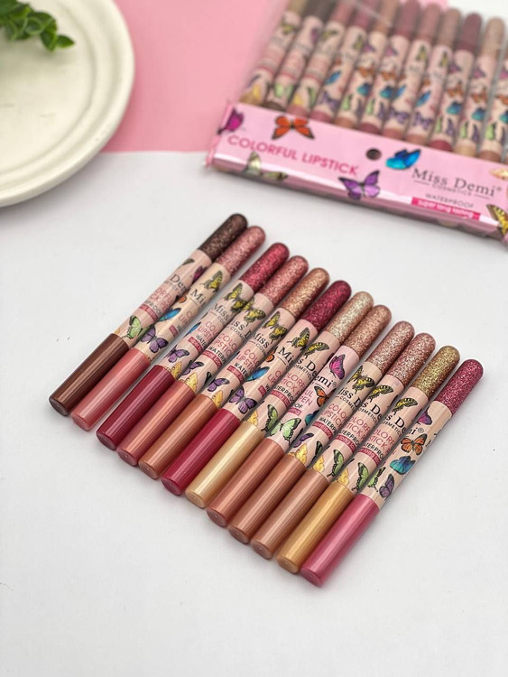 رژ لب مدادی گلیتری میس دمی پک ۱۲ عددی دارای رنگهای متنوع، بافت نرم و ماندگاری بالا است که پوششی یکنواخت و زیبا روی لب ایجاد میکند. این محصول با طراحی کاربردی، فرمولاسیون ایمن و بستهبندی شیک، گزینهای ایدهآل برای آرایش روزانه و حرفهای محسوب میشود