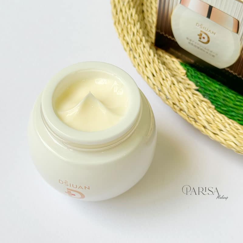 کرم روز آبرسان و جوانساز DSIUAN دارای عملکردی چند منظوره شامل آبرسانی، شاداب کننده، رفع چین و چروک، لیفت کننده و تغذیه کننده پوست می باشد. تکنولوژی تقویت کلاژن در فرمولاسیون این محصول ترکیبی از ترکیبات پپتیدی و کلاژن هیدرولیز شده است تا به تقویت مجدد قدرت پوست کمک کند تا پوست سفت تر به نظر برسد و ظاهری برجسته تر داشته باشد. این کرم بافت فوق العاده دلپذیر با احساس ابریشمی دارد و پوست را تغذیه می کند، سریع جذب می شود و بدون احساس چربی در پوست ذوب می شود.